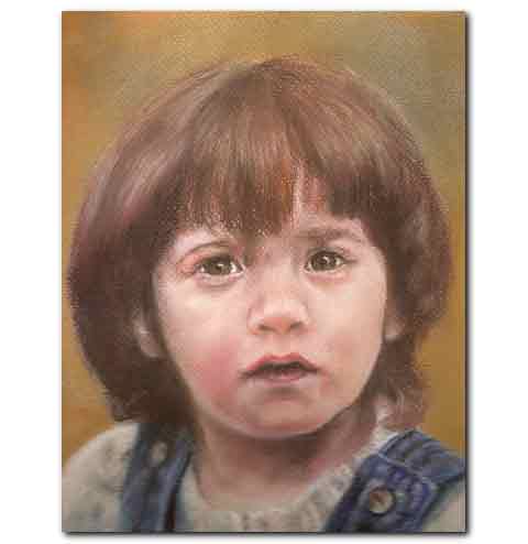 Pastels are the artist's favourite meduim for portraying people, and drawing skin or flesh. All these artworks are on "ingre paper", a specialist fine grain artist's pastel paper. Even after a fixative is applied, pastel artworks can still smudge, so they need to be handled with care when in an unframed state. Pastel portraits will always require a glazed frame.